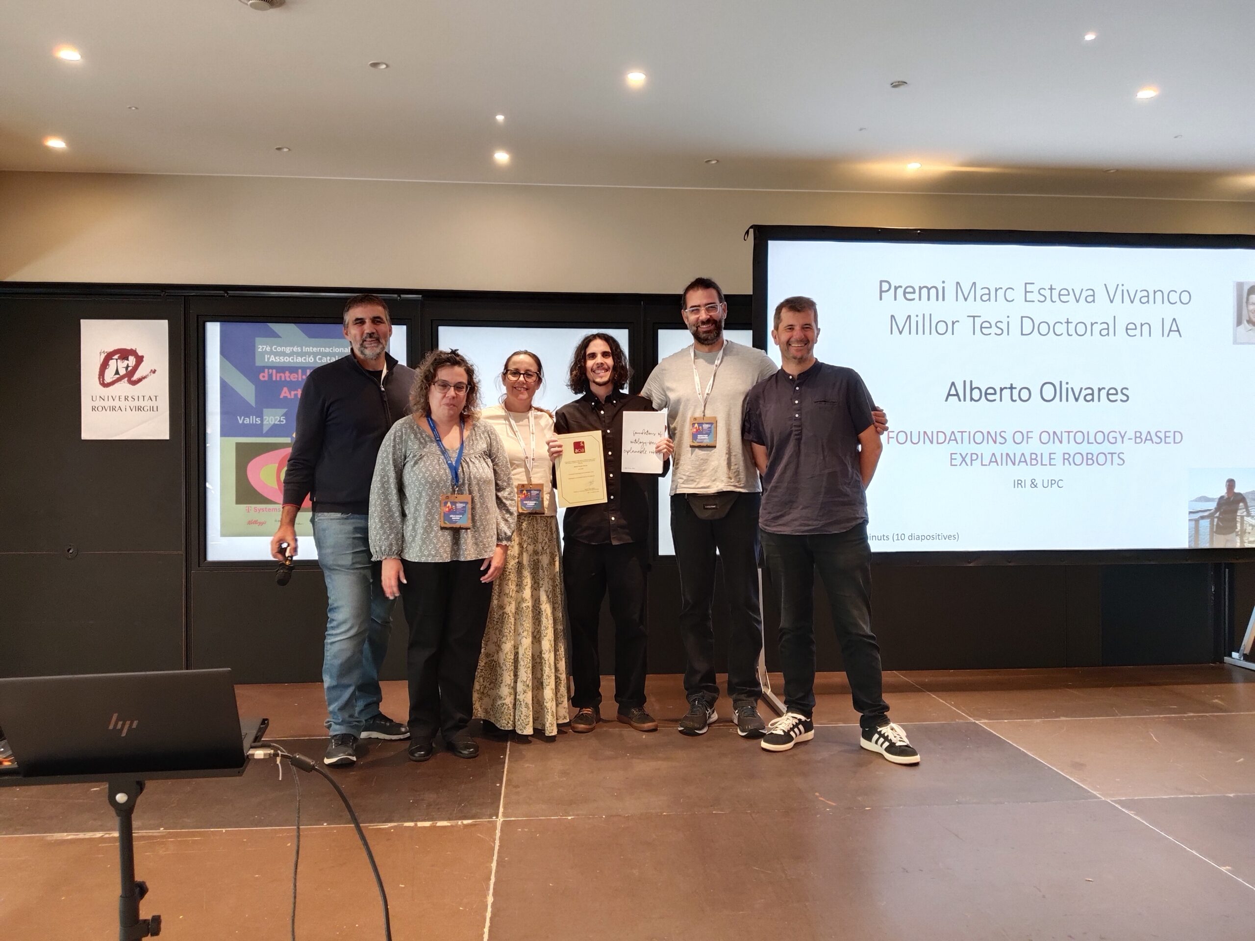 ARISE project partner CSIC, through its Institute of Robotics and Industrial Informatics team, has been awarded the prestigious Marc Esteva Vivanco award for the best PhD thesis by the Catalan Association for Artificial Intelligence (ACIA). The award was presented during the 27th International Congress of the Catalan Association for Artificial Intelligence (CCIA 2025), held at the Felix Hotel in Valls (Tarragona, Spain) on October 17.